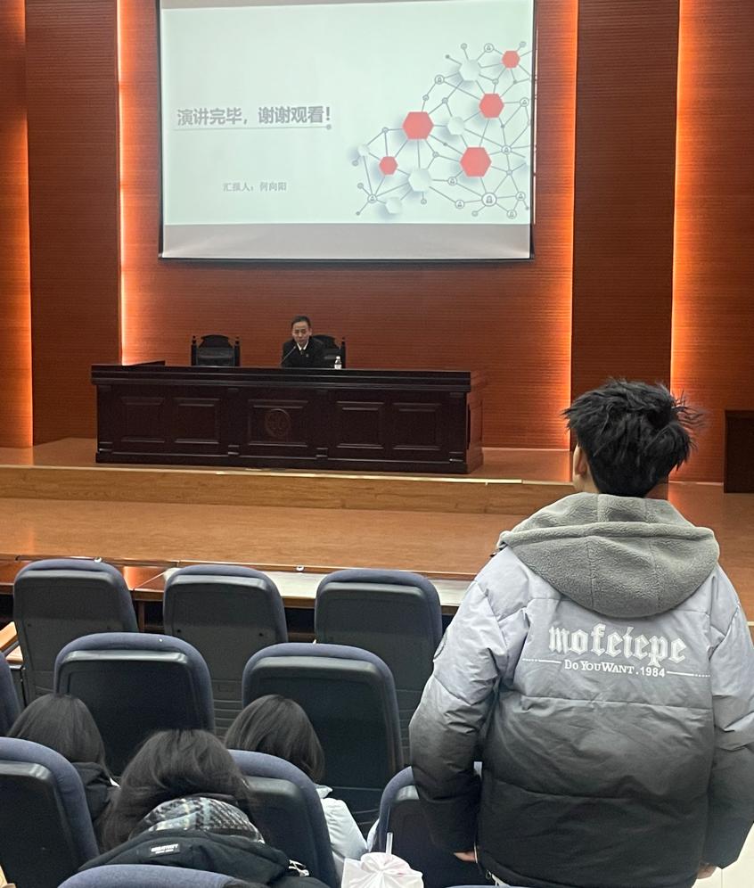 为有效提升我院学生的法律实践能力,落实我院教学实践周系列活动方案,2024年12月13日晚,我院2024-2025学年第一学期教学实践周系列活动预热活动在长安校区模拟法庭启动。长安区人民法院民事审判三庭副庭长何向阳受邀为院内120余名法学生带来一堂以宪法精神与大学生法律风险为主题的法律实践宣讲课,本次活动由242net必赢官方教师、2023级本科生班主任李国华博士主持。