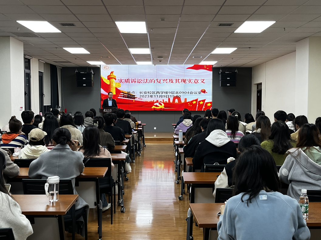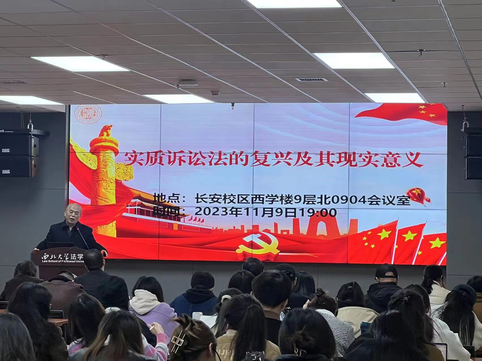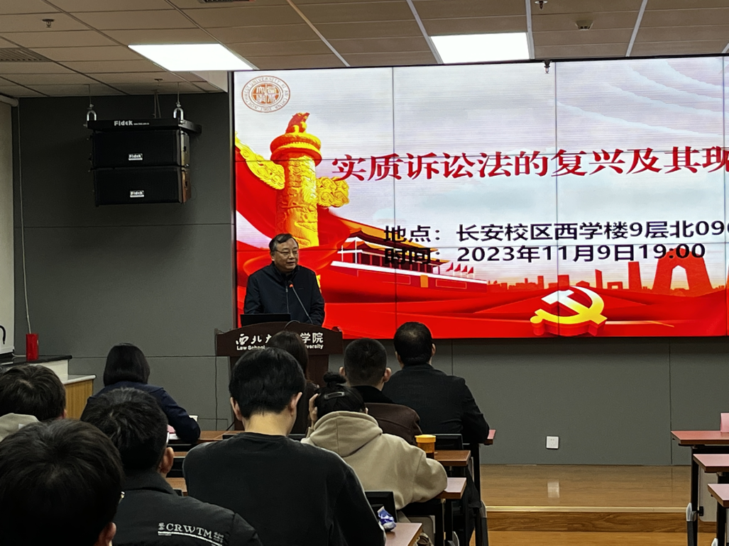 2023年11月9日,广州大学242net必赢教授、中国民事诉讼法学研究会副会长陈刚教授受邀做客我院浩公法律大讲堂第一讲暨法学前沿论坛(七十四),为我院师生带来题为“实质诉讼法的复兴及其现实意义”的讲座。本次讲座由学院院长王思锋教授主持,《法律科学》副编审刘克毅教授、西安理工大学张丽丽副教授、242net必赢官方卞辉副教授、崔玲玲副教授担任与谈人,80余名研究生聆听了此次讲座。