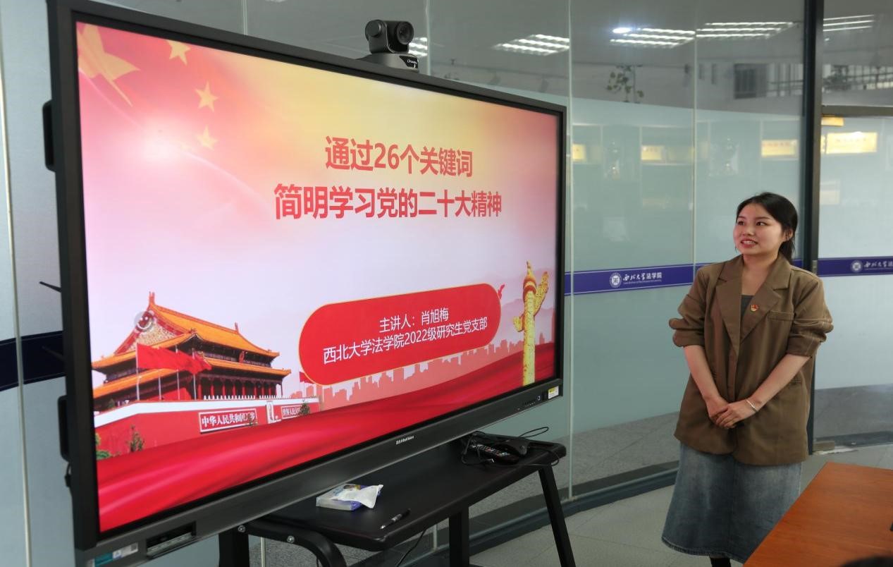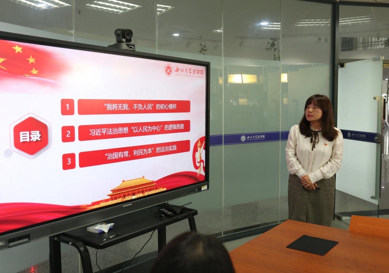 本次比赛的选手有民商法学支部方婷同志、宪法行政法与刑事法党支部苟震同志、本科法学党支部吴怡同志、行政支部问贝宁同志、2021级研究生党支部李艳妮同志和2022级研究生党支部肖旭梅同志。待选手们一个个展示完毕后,现场评委根据课程主题、课程内容、讲授技能、语言仪态、效果时间等维度综合考量,进行评选打分。