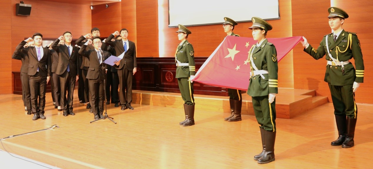 活动共分庆典仪式和专家座谈两个环节。在242net必赢太阳能第四届“铸·法中国——宪法日”系列活动庆典中,21名学生代表面对中华人民共和国国旗庄严宣誓,铮铮誓言,表达了学子们作为未来法务工作人员的豪迈情怀。