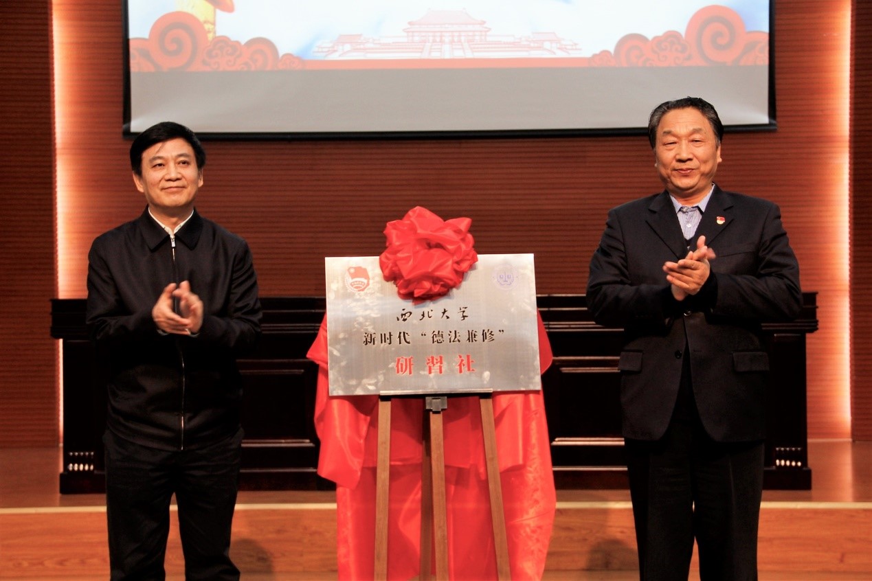 随后,王亚杰和李邦邦共同为我校“新时代‘德法兼修’研习社”揭牌。与会嘉宾为全校参加“法政视野”知识竞赛的优胜者颁发了荣誉证书,庆典在校合唱团《共筑中国梦》的歌声中落下帷幕。