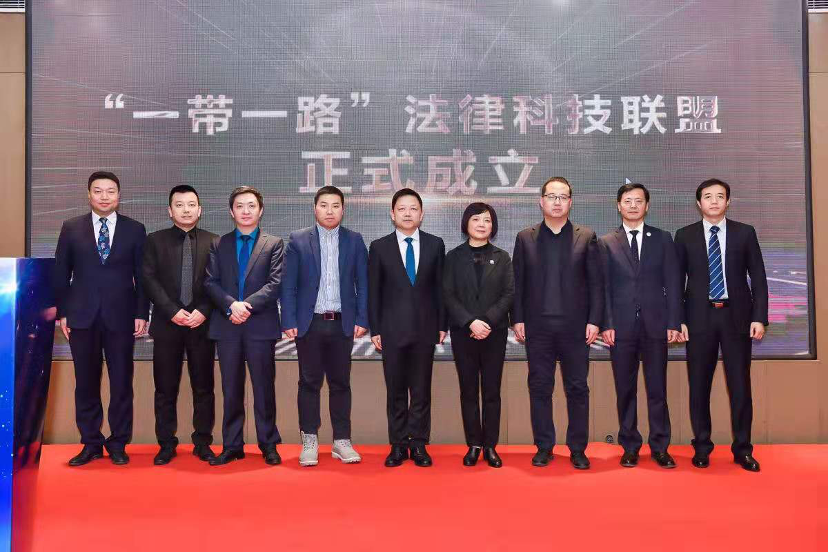 西安仲裁委员会负责人白晓莉、学院院长王思锋、西北政法大学教务处处长陈京春、陕西省律师协会副会长田亚强、成都斯沃茨科技有限公司创始人CEO张智鑫、北京观韬(西安)律师事务所主任贾建伟、陕西秦石律师事务所主任田磊、万商天勤律师事务所合伙人张晓峰共同启动“一带一路”法律科技联盟成立仪式。