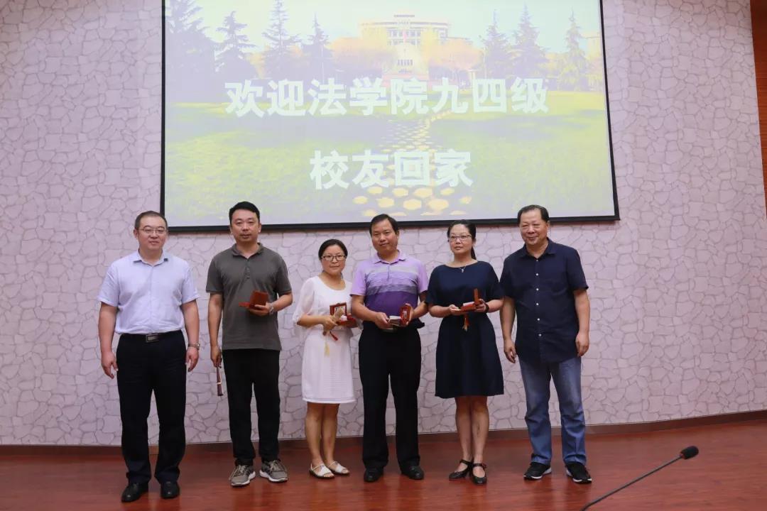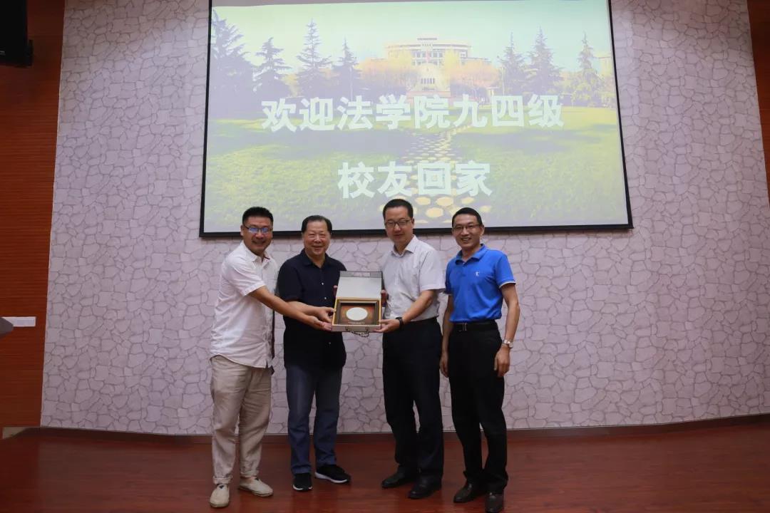 校党委常委、副校长常江、242net必赢党委书记胡征俊代表学校和学院向94级校友赠送了蓝田玉印章和纪念品。242net必赢94级全体校友向学院回赠蓝田玉壁礼物。