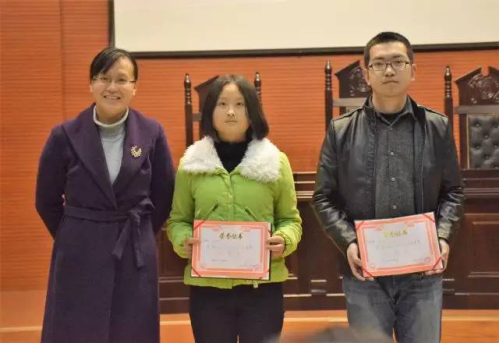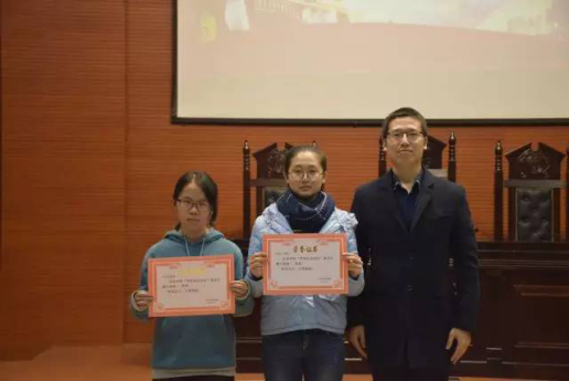 随后,我院副院长成剑老师向大家宣读了“法政视野”知识竞赛、“学宪法讲宪法”演讲比赛获奖名单。颁奖仪式开始,伴随着在场同学热烈的掌声,获奖选手们依次上台领奖、合影。
