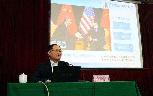 启动仪式后,“华商大讲堂”知识产权专场报告开讲。卢鹏起局长以“知识产权与经济社会发展”为题做了专题报告。他从知识产权的基本概念入手,结合自身多年从事知识产权工作的心得和体会,以大量生动详实的案例,深入浅出、旁征博引,分析了知识产权在社会经济活动中的重要作用。他强调,知识产权不仅要创造出,更要保护好、运用好,使知识产权成为转方式、调结构的重要支撑,并真正做到“依托于创新、成长于法律、激活于经济、显效于市场”,助力“陕西梦”、“中国梦”。
