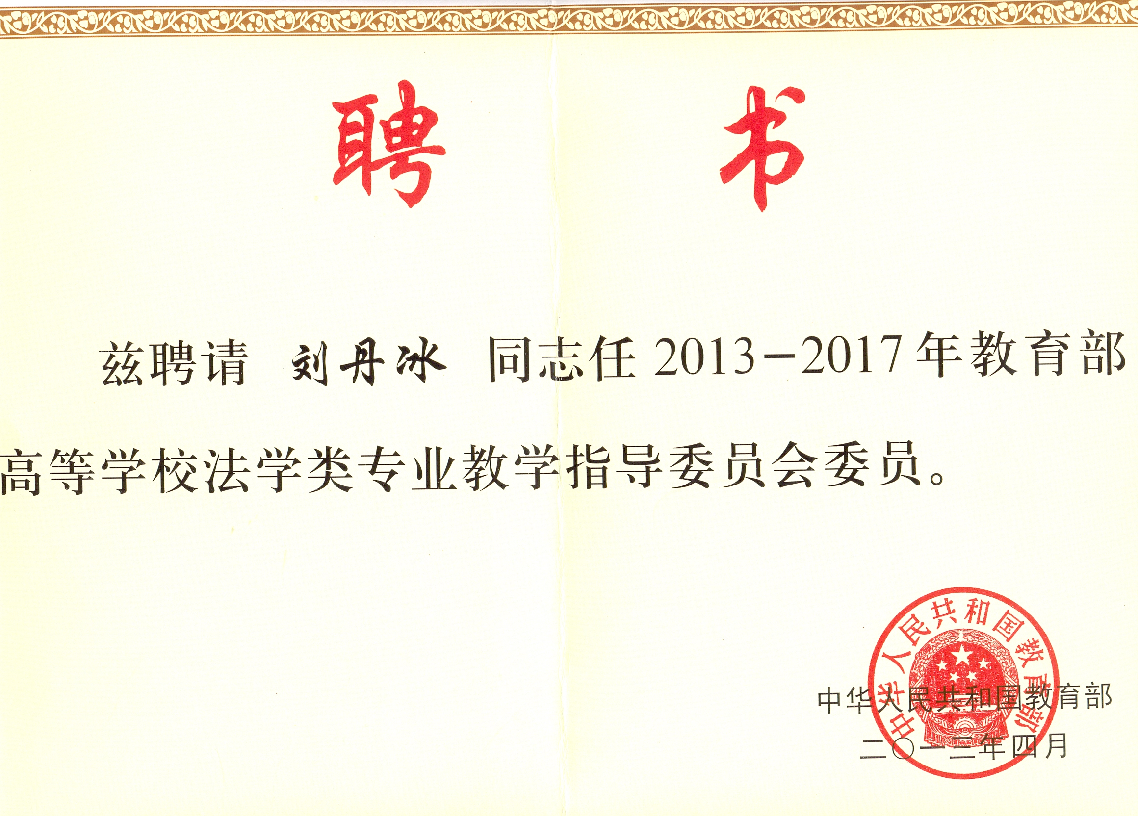 教育部日前公布了2013-2017年教育部高等学校教学指导委员会委员名单,我院刘丹冰教授入选新一届教育部高等学校法学类专业教学指导委员会委员。