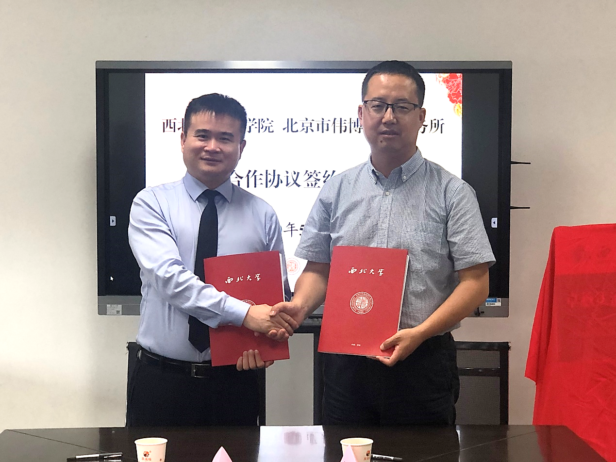 5月21日下午,我院与北京市伟博律师事务所全面合作协议签约仪式在长安校区西学楼举行。北京市伟博律师事务所主任李伟民、专职律师赵逸、取证部部长王柯力,学院党委书记李一凡、院长王思锋、党委副书记马丽、副院长成剑,院长助理邱洪华教授、刘建仓副教授、黄菁茹博士等参加了签约仪式。签约仪式由学院党委书记李一凡主持。