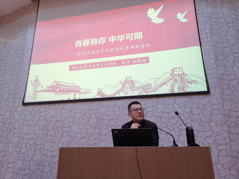 赵沛副教授首先讲述了马克思主义与中华民族命运的联系。自1840年鸦片战争以来,中国的大门被迫打开,中国人看到了中国与西方世界的巨大差距,寻求变革。在经历器物之变、制度之变无用后,中国人开始寻求文化之变。在经历新文化运动、俄国十月革命、五四运动后,中国共产党成立了,从此中华民族的命运与马克思主义、与中国共产党紧密联系在一起。中国共产党高举马克思主义的旗帜,带领中国人民站起来、富起来、强起来,为中华民族伟大复兴而不懈奋斗着。
