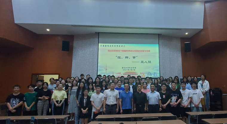 最后,苟震博士进行了总结发言,苟老师提出,未来属于青年,希望寄予青年,作为青年法学学子,将来无论是从事任何工作,西大学子都要培养并坚守自己的“法治初心”。同学们应继续学习基础知识,夯实实践技能,弘扬法治精神,在未来的工作和学习中充分彰显西大学子的使命担纲。特别在大时代面前,西大学子当以实现中华民族伟大复兴为己任,不负时代,不负韶华,在法治轨道上推动民族复兴!
