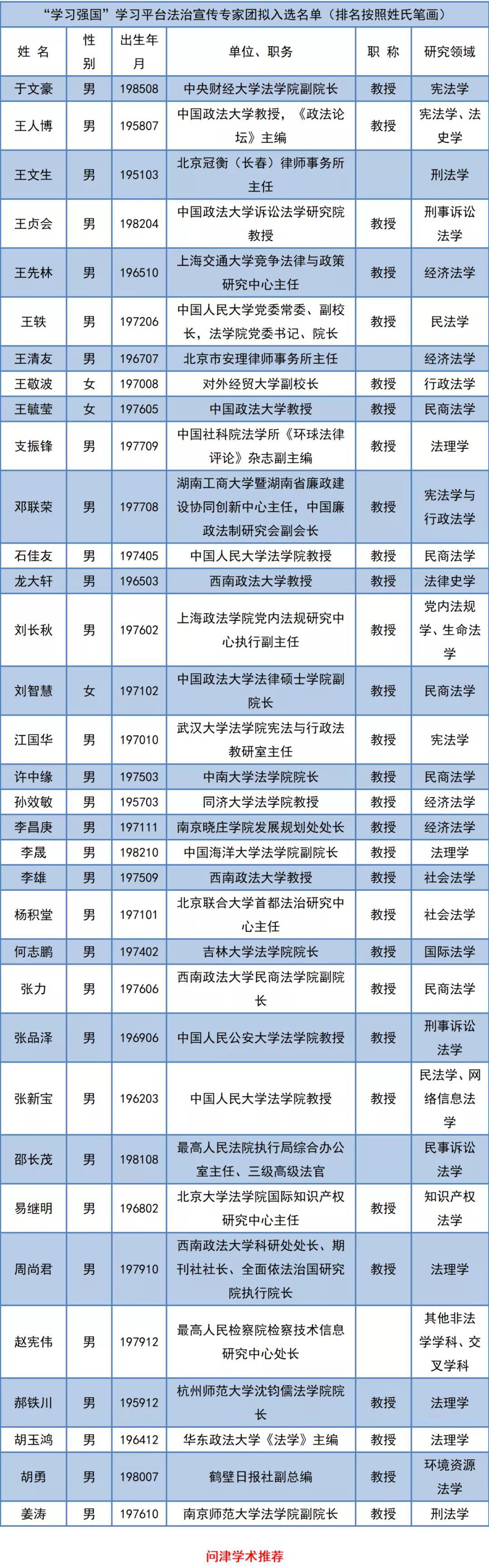 为深入学习宣传贯彻习近平法治思想,贯彻落实中办、国办《关于加强社会主义法治文化建设的意见》,推动对习近平法治思想进行学理化阐释、学术化表达、体系化构建,讲好中国法治故事,传播法治中国声音,中央宣传部“学习强国”学习平台和中国法学会《民主与法制》社共同发起并遴选法学法律界专家,组成“学习强国”学习平台法治宣传专家团。专家团是为“学习强国”学习平台撰写理论评论、学术研究文章,开展普法解读,提供智力支持的智库组织。优秀文章还将向中央重点新闻网站推荐刊发。专家团成员实行聘任制,聘期2年。