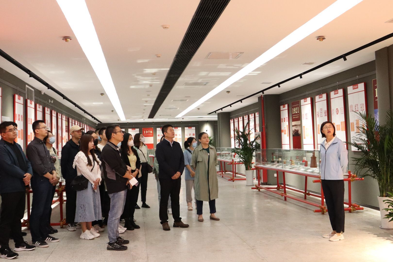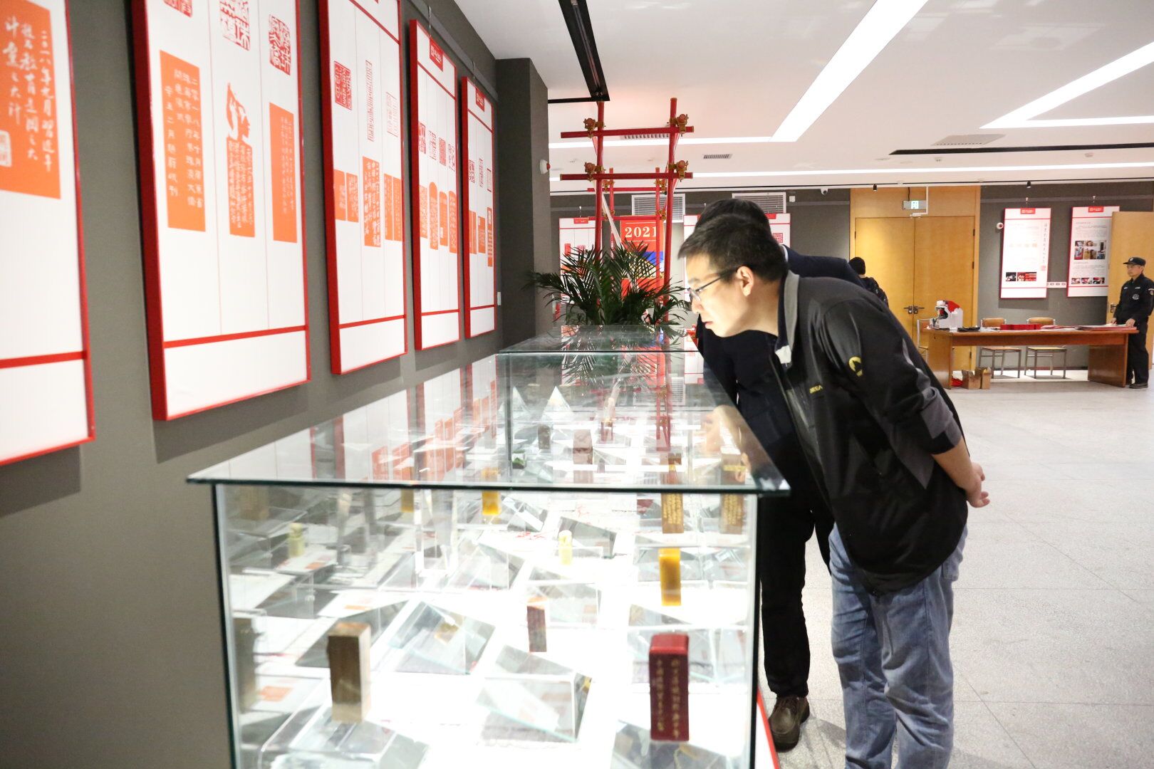 步入展览厅,师生们一起聆听讲解员对展厅各项作品的介绍,在了解了各项展品背后的故事之后,大家深有感悟,对党史和传统文化有了更加深入的理解。随后,师生们自行参观,感受传统篆刻艺术与现代技艺的巧妙结合。