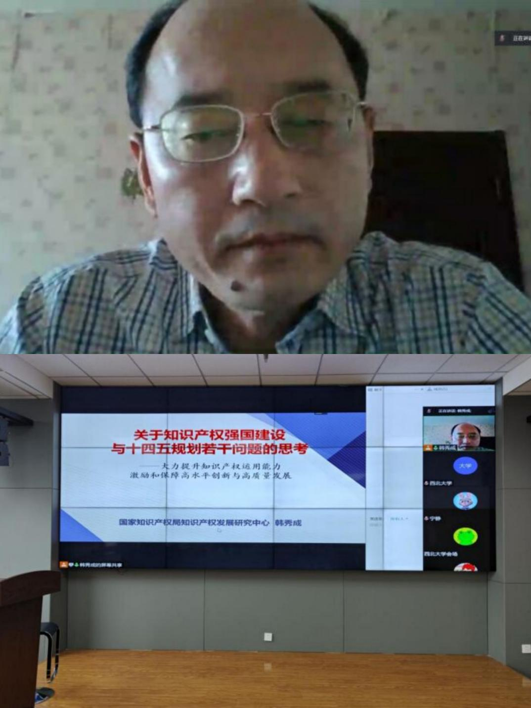 2022518日下午,国家知识产权局知识产权发展研究中心主任韩秀成主任为陕西省高校大学生知识产权技能培训班主讲第一场专题报告,主题为《关于知识产权强国建设与十四五规划若干问题的思考——大力提升知识产权运用能力激励和保障高水平创新与高质量发展》。韩秀成主任阐明了知识产权的内涵,通过介绍美国“337”调查中涉华企业的情况,表明了中美两国近些年来在知识产权领域相互竞争的现状,之后结合相关数据以及有关纲要表现出我国知识产权事业的迅猛发展以及突出的战略地位,在介绍了习近平总书记关于知识产权的一系列论述之后,韩秀成主任对我国知识产权强国建设与十四五规划问题提出了自己的思考,认为我们应不忘知识产权初心,始终坚定不移地朝着正确的方向不断地努力。