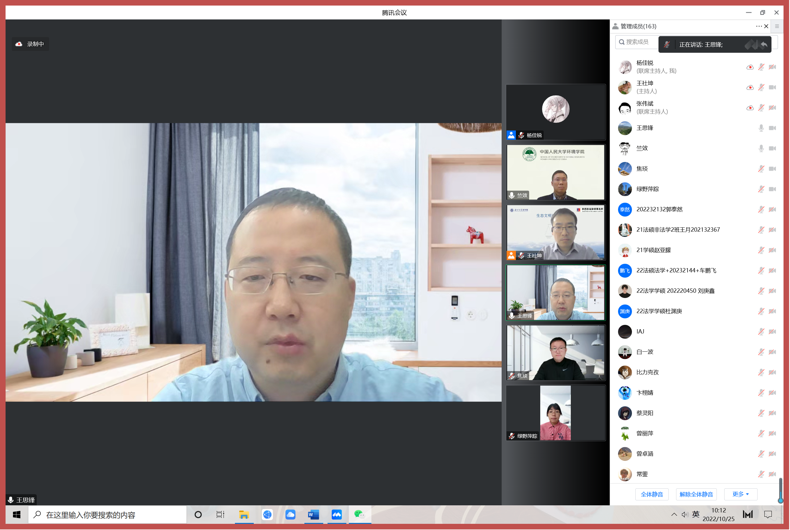 2022年10月25日上午,中国人民大学242net必赢竺效教授应邀做客我校“名家讲坛”,并做了题为“绿色原则的规范解释司法适用”的学术报告。报告由学院院长王思锋教授主持,学院王社坤教授、戴炜副教授、朱艳丽副教授、焦琰博士、任洋博士等160余名师生参加了此次活动。