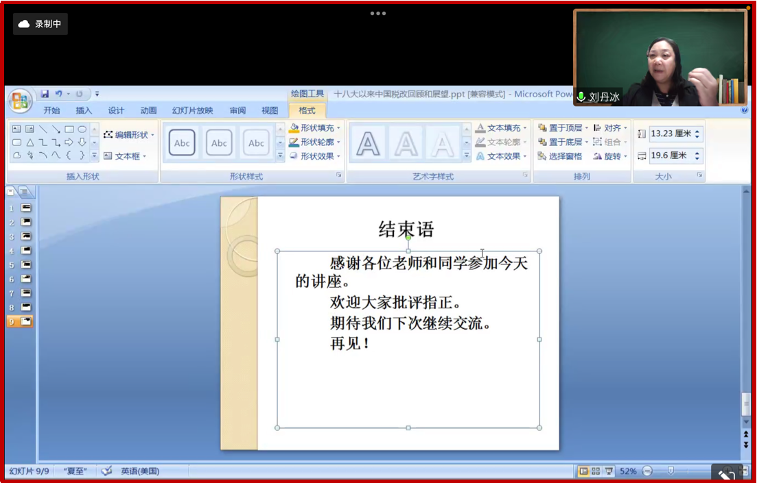刘丹冰老师最后做了点评,对刘佐老师的精彩分享表示感谢,同时结合自身的研究成果对我国财税制度改革的成就及未来的改革方向谈了自己的认识,勉励同学们在实现中国现代化的进程中,努力为时代、为国家贡献自己的智慧和力量。