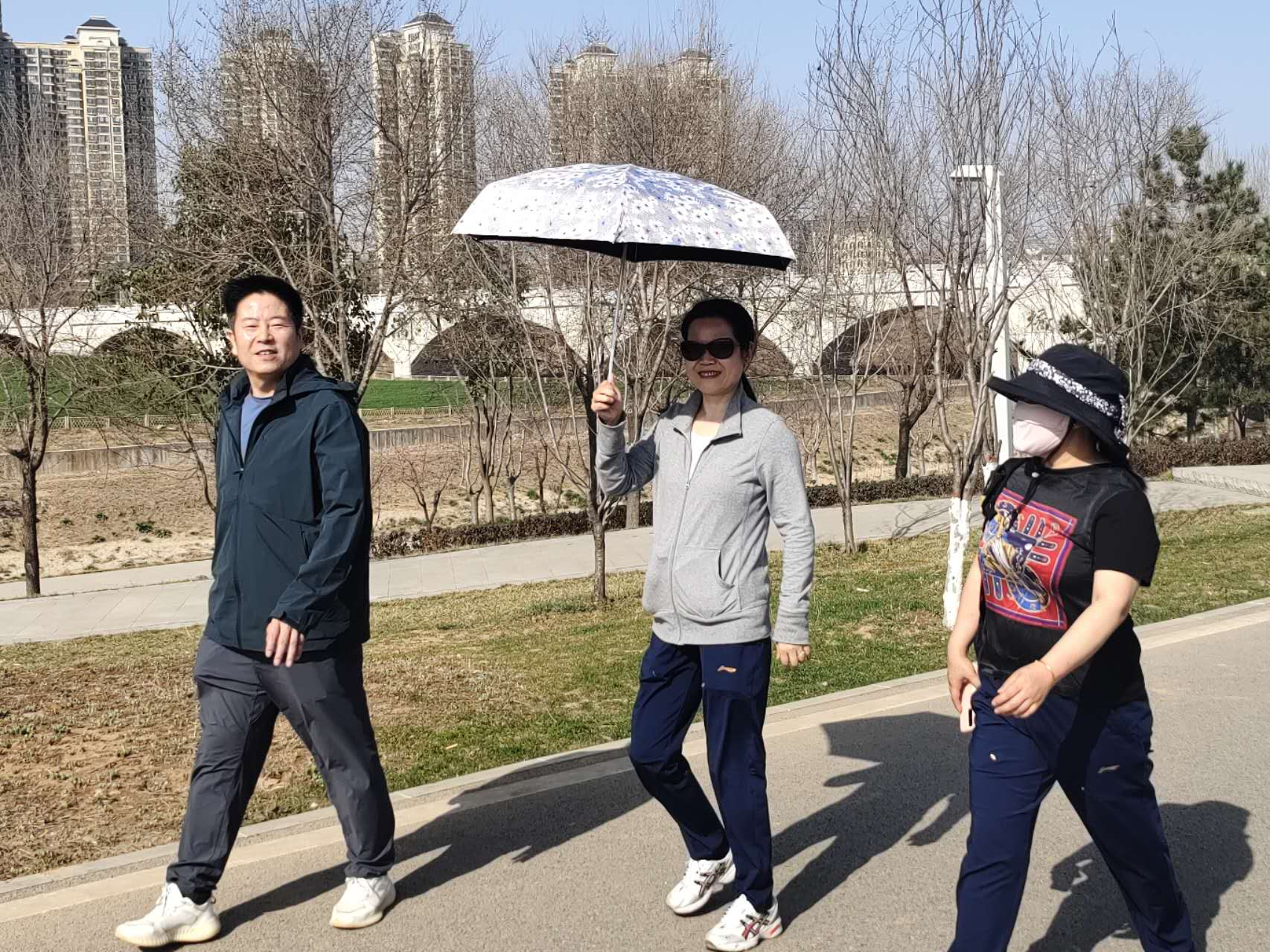 教职工们走到子午桥后折返,最终返回蔷薇园。活动全程约 2.5km