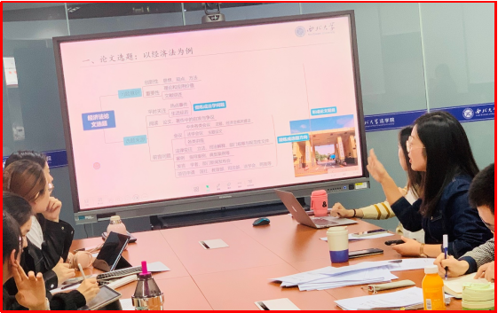 本届学术活动月,学院组织了二十二场研究生学术报告,主题涉及民商法学、刑法学、诉讼法学、知识产权中国法律史等多个方面。学术汇报采取圆桌论坛的形式,每场报告均由学生作主题分享指导老师组织讨论并对论文进行点评。参与的老师有赵海怡教授、郑辉副教授、刘建仓副教授、卞辉副教授、张曼副教授、代水平副教授、龙井瑢副教授、涂慧副教授、彭秀坤副教授、田海副教授、杜路副教授、傅强博士、吕康宁博士、葛恒浩博士、黄菁茹博士、侯欢博士、苟震博士、丁天立博士、刘桢博士、焦琰博士、方婷博士、高小芳博士等。老师从论文选题、体例结构、行文逻辑、论证内容等方面入手,了全面具体的分析和客观的评价,既肯定了同学们的优点,也指出存在的问题,并针对性地提出了改进建议。老师们深厚的理论素养与细致的指导过程得到了同学们的一致好评