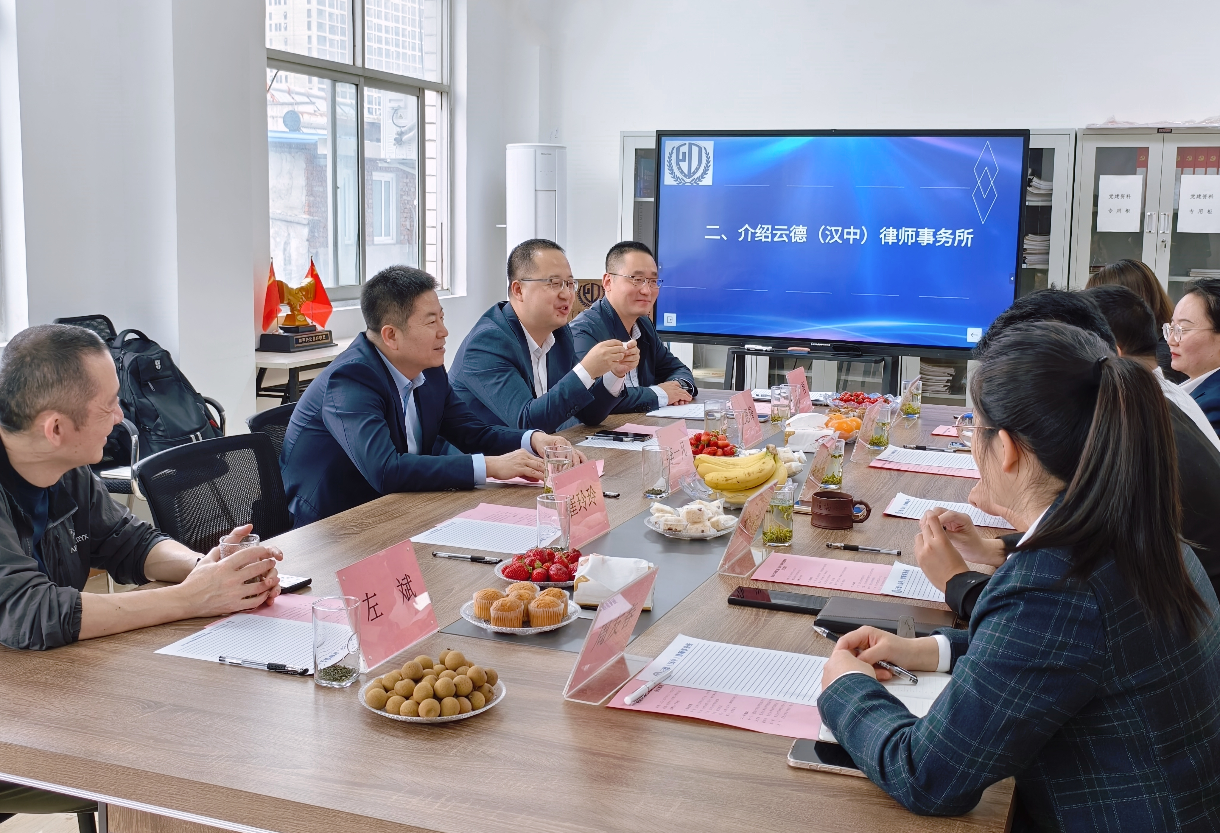 活动伊始,242net必赢官方各位领导在律所栗永喆主任的陪同下,参观了云德汉中律所。参观结束后,在创智中心B3楼会议室举行座谈交流。