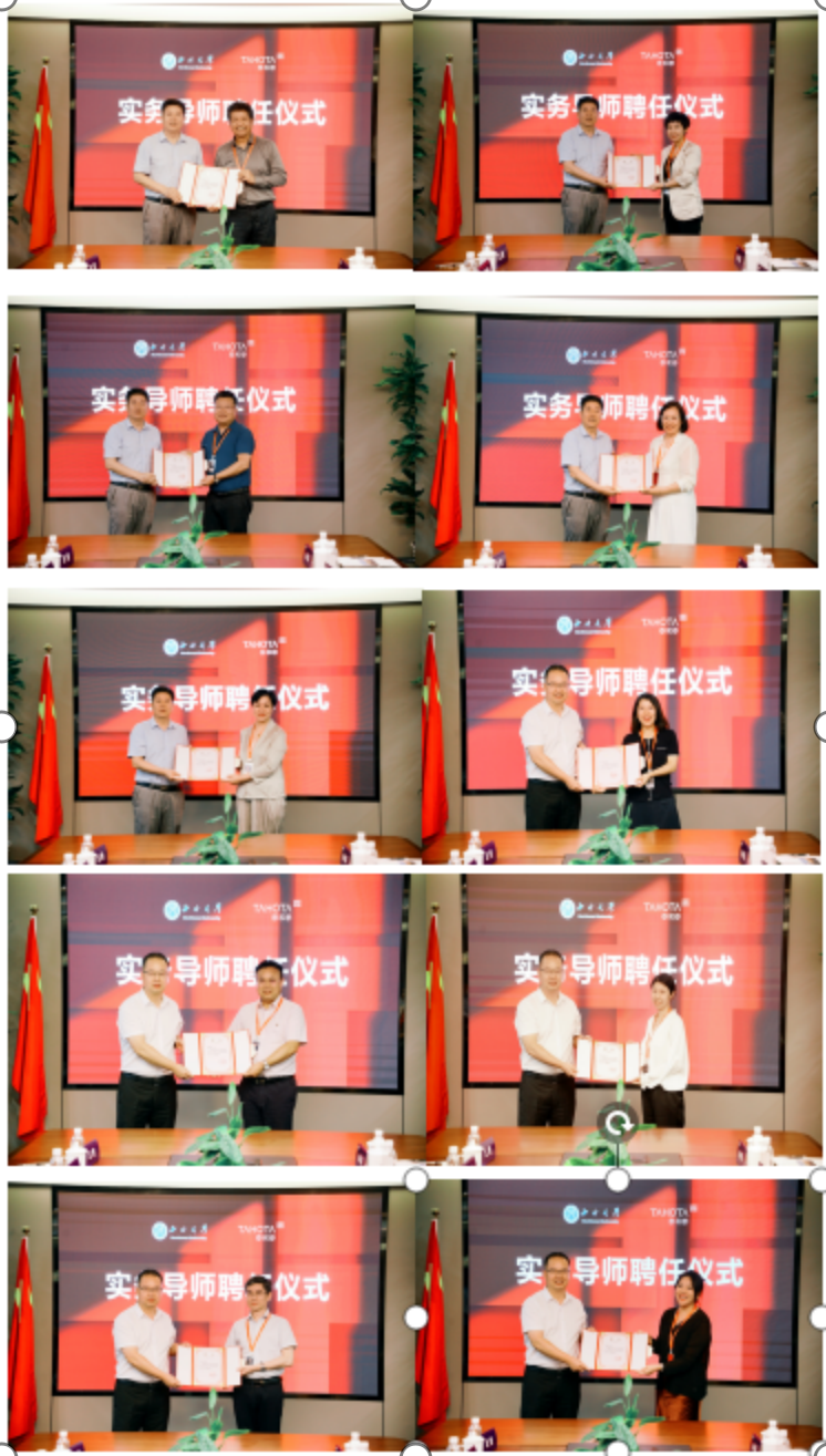 (李一凡书记、王思锋院长代表学院为姚子奇、张雅琪、王小龙、刘耀秀、马戎等十位律师颁发了研究生实务导师聘任证书)