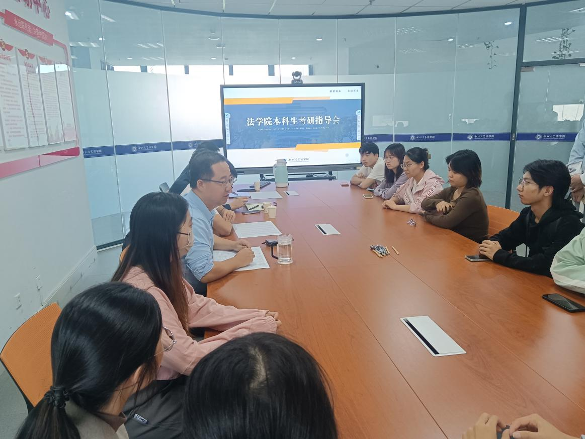 为了进一步促进法学专业学生就业能力提升,扎实推进2025届本科生考研工作,提前了解学生考研复习和预报名情况,进一步帮助学生掌握复习方法、纾解考试压力、增强备考信心,我院于2024109日在西学楼0900会议室召开考研座谈会,院长王思锋,刘桢、丁天立、杨霁明、问贝宁老师以及2025届备考同学共同参加。