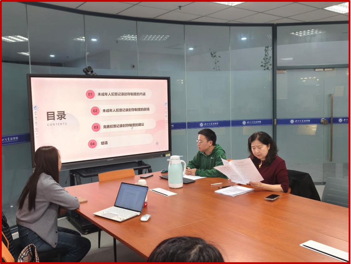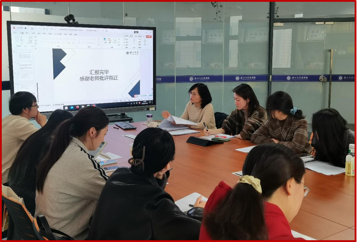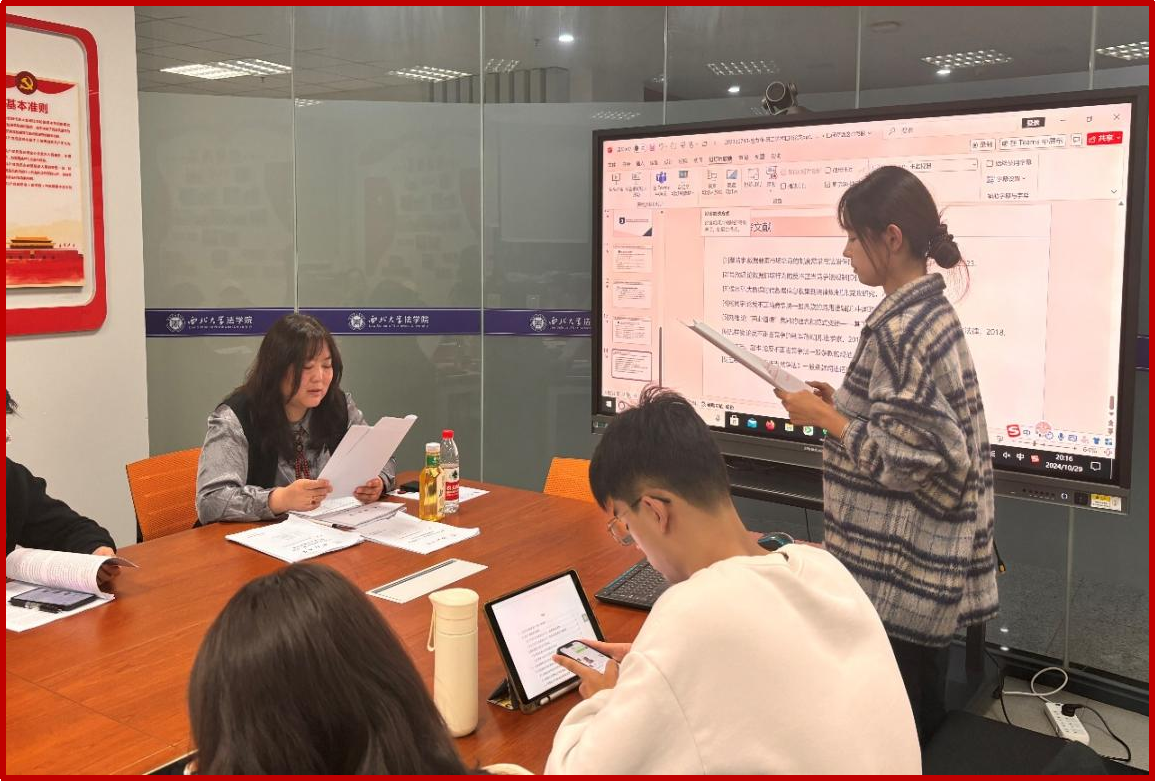 本次学术活动月共计开展了21场研究生学术报告,参加人数近300人,主题涉及民商法、刑法、诉讼法,知识产权法等多个方面。每位同学就自己感兴趣的学术热点问题撰写论文,并进行10分钟左右的汇报,其他同学展开讨论,最后由老师进行点评。参加点评的老师有赵海怡教授、尉琳副教授、姜昕副教授、崔玲玲副教授、龙井瑢副教授、涂慧副教授、田海副教授、杜路副教授、傅强老师、高杨老师、谢寄博老师、吕康宁老师、葛恒浩老师、黄菁茹老师李国华老师、苟震老师、方婷老师、刘桢老师、侯欢老师、丁天立老师、任洋老师等老师们从论文选题、体例结构、行文逻辑、论证内容等方面入手,作了全面具体的分析和客观的评价,既肯定了同学们的优点,也指出了存在的问题,并针对性地提出了改进建议。