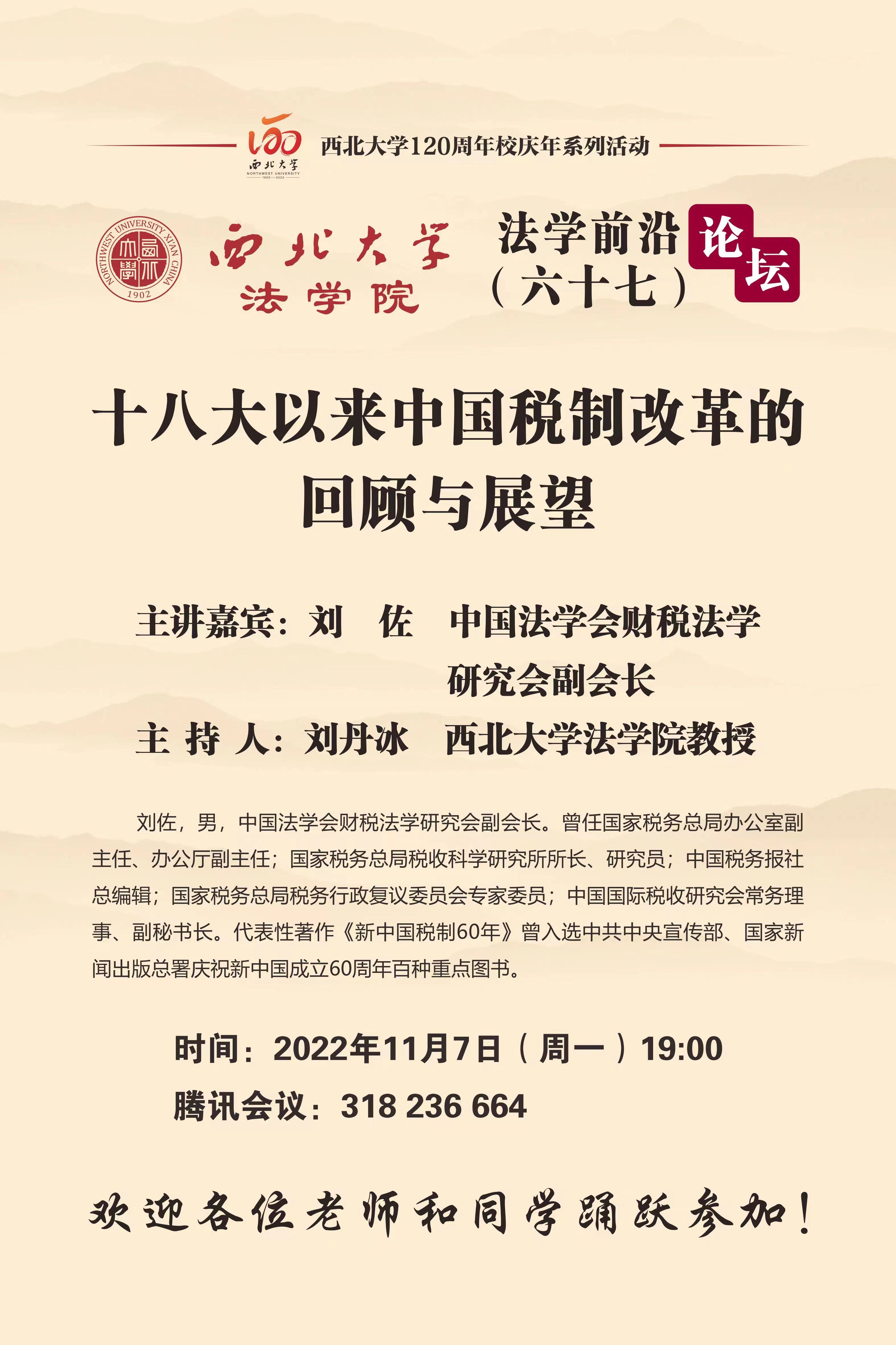 法学前沿论坛(六十七)——十八大以来中国税制改革的回顾与展望