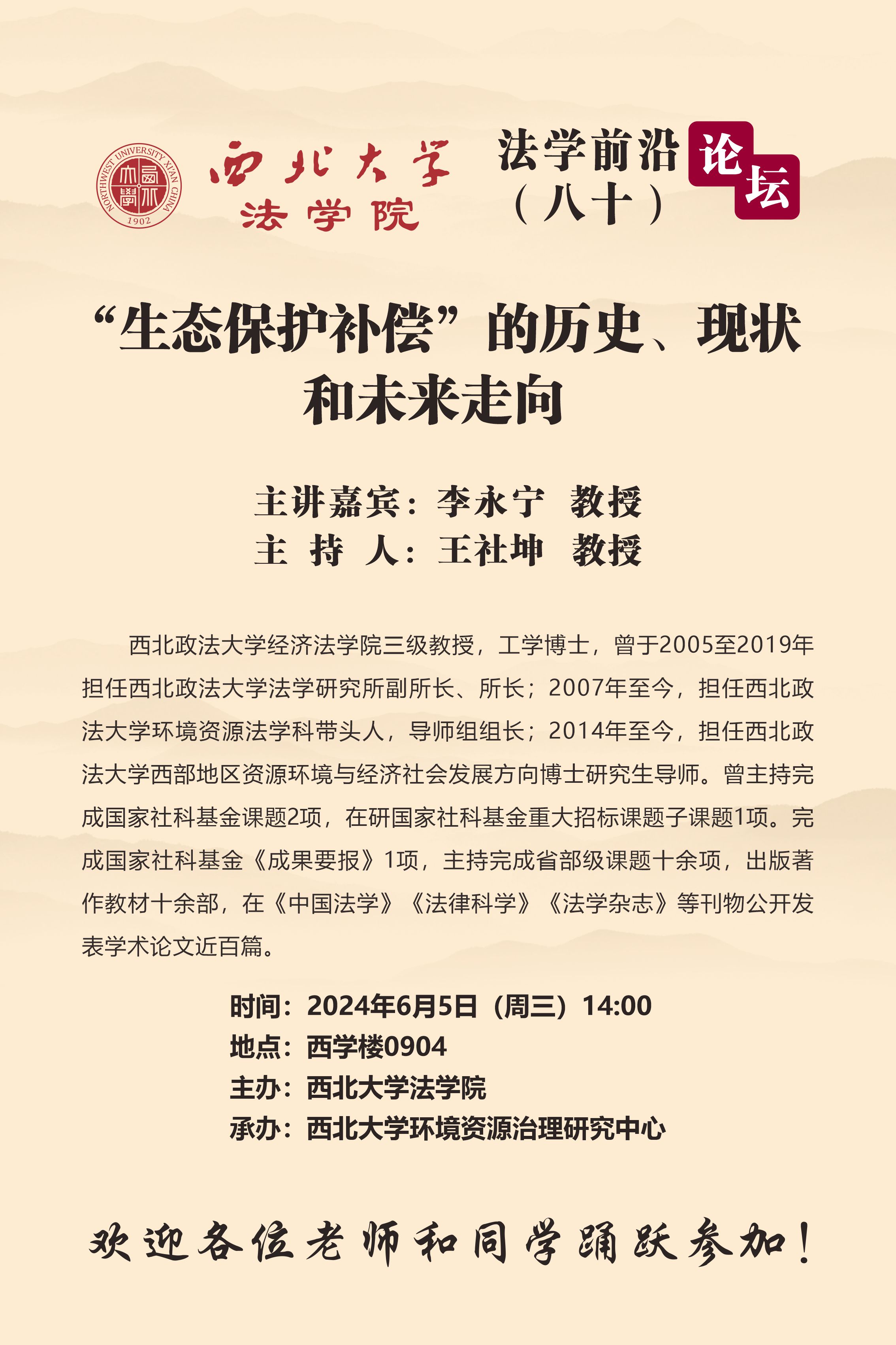 法学前沿论坛(八十)——“生态保护补偿”的历史、现状和未来走向