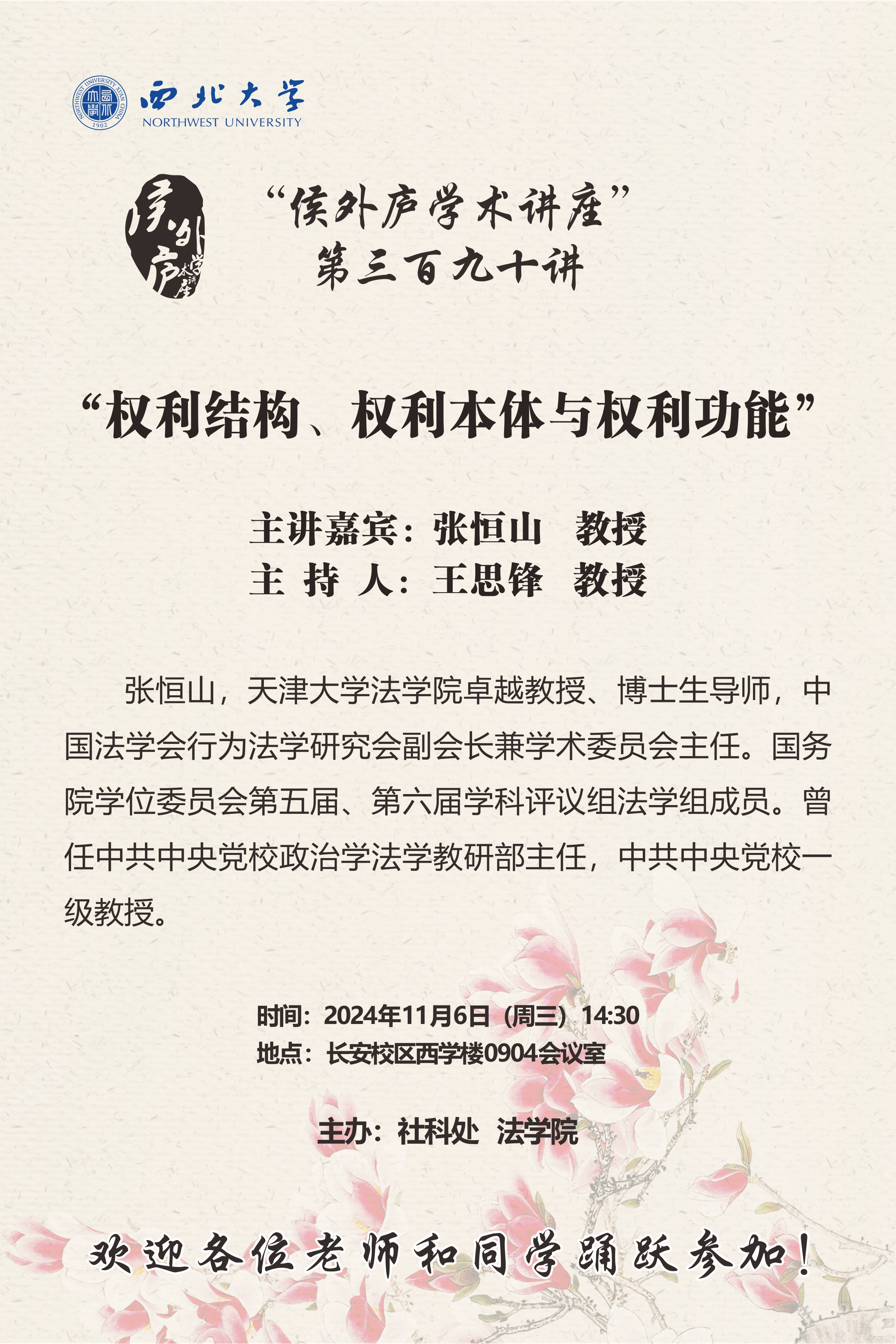 “侯外庐学术讲座”(三百九十)——“权利结构、权利本体与权利功能”