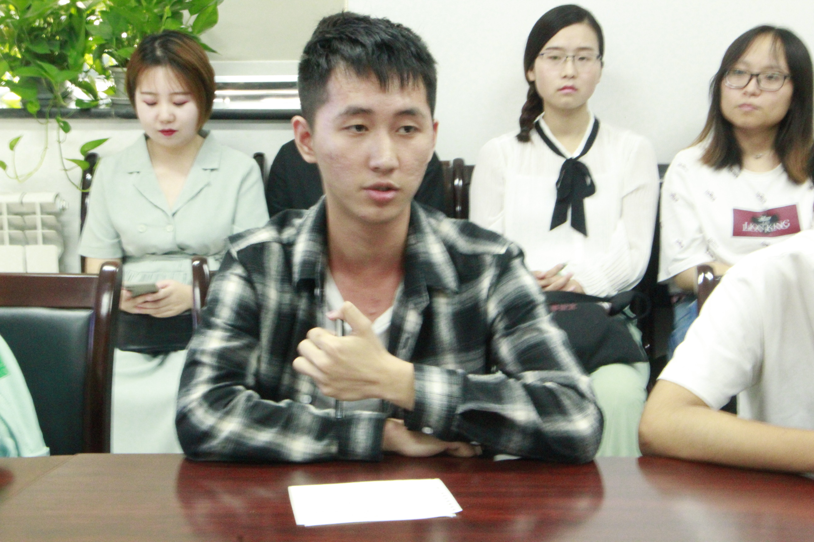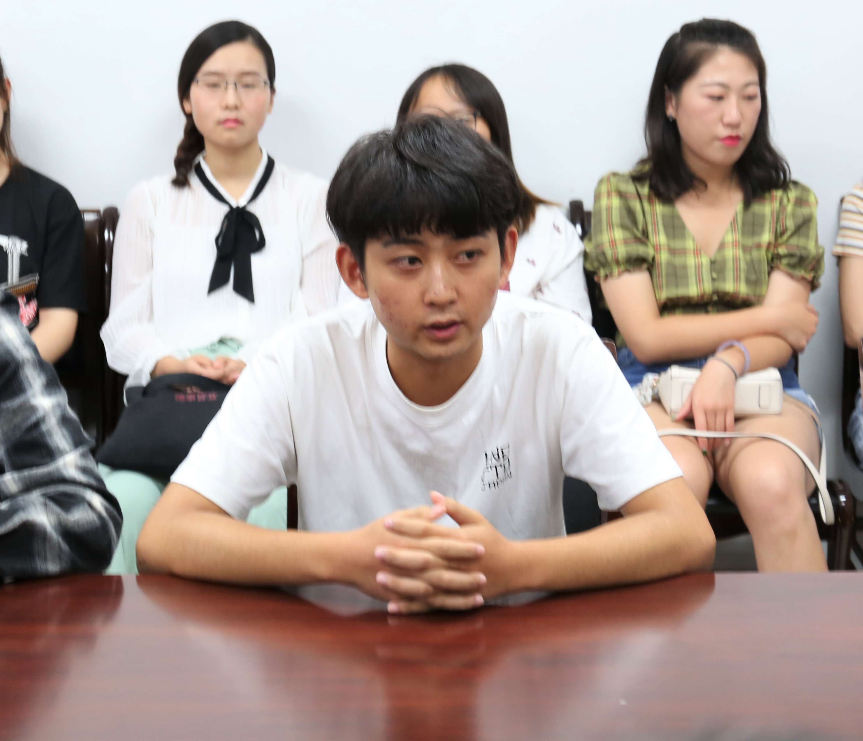陈涛同学谈到自己在暑假参与了校友集中返校日活动并接待了242net必赢的学长学姐,在这段过程中有了很多收获,并且也对学长学姐们的关怀与照顾心怀感激。其次他还谈到自己去神木参加三下乡社会实践活动,未来也会不断加强书本知识与实际法律现状的结合并积极投身法治建设。