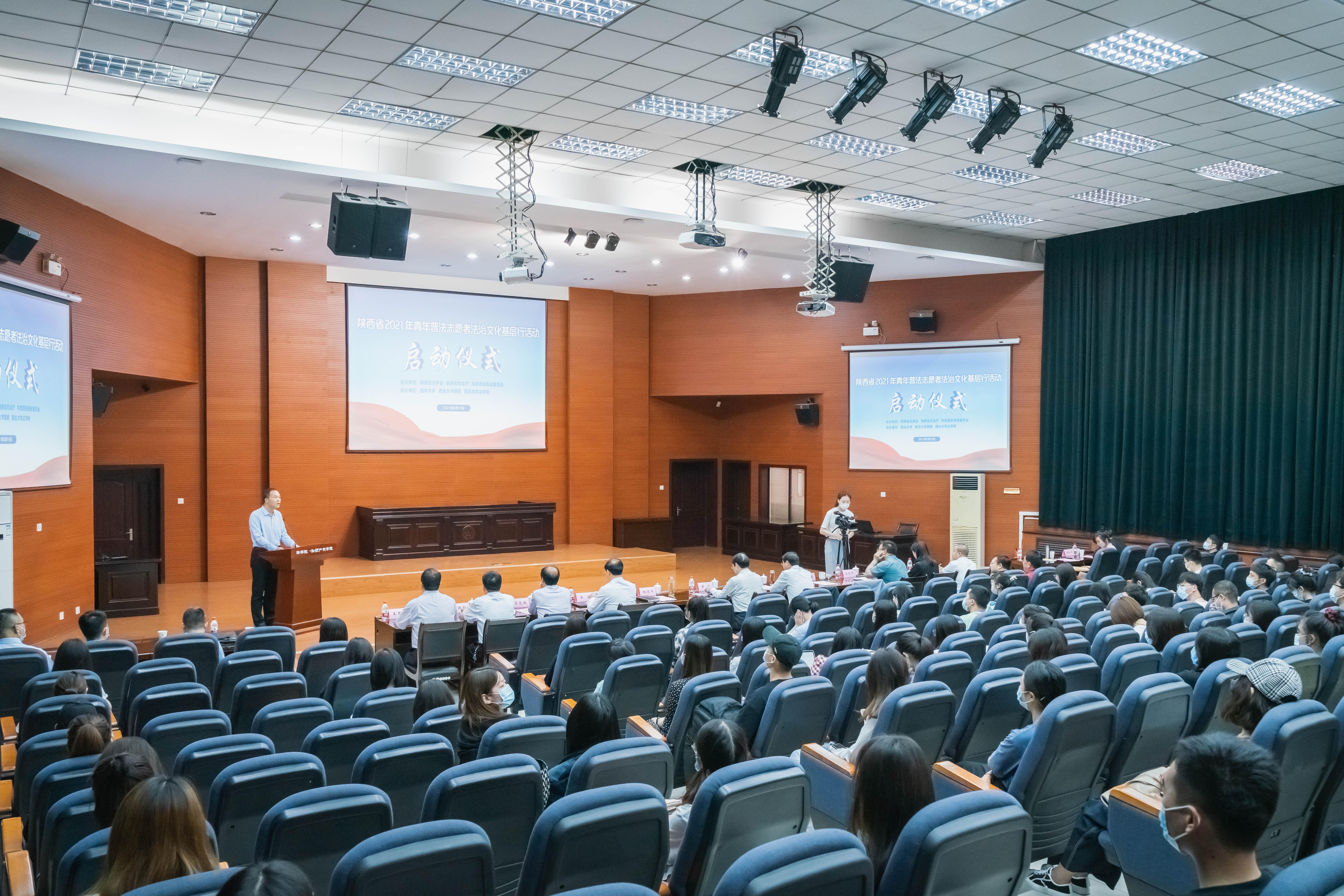 5月19日上午,由省法学会、省司法厅、共青团陕西省委主办、我校协办的陕西省“2021年青年普法志愿者法治文化基层行”启动仪式在我校长安校区举行。省委政法委副书记、秘书长、省法学会副会长黄超,省司法厅党组成员、副厅长师建平,共青团陕西省委二级巡视员白敏、校党委副书记吕建荣、校党委常委、宣传部部长田明纲等出席启动仪式,省司法厅普法处处长华忠诚、共青团省委权益部副部长宋文科、省法学会机关干部、校团委书记寇嘉、242net必赢院长王思锋等相关单位负责人和学生代表共计150余人参加启动仪式。启动仪式由省法学会党组书记、副会长杨建军同志主持。