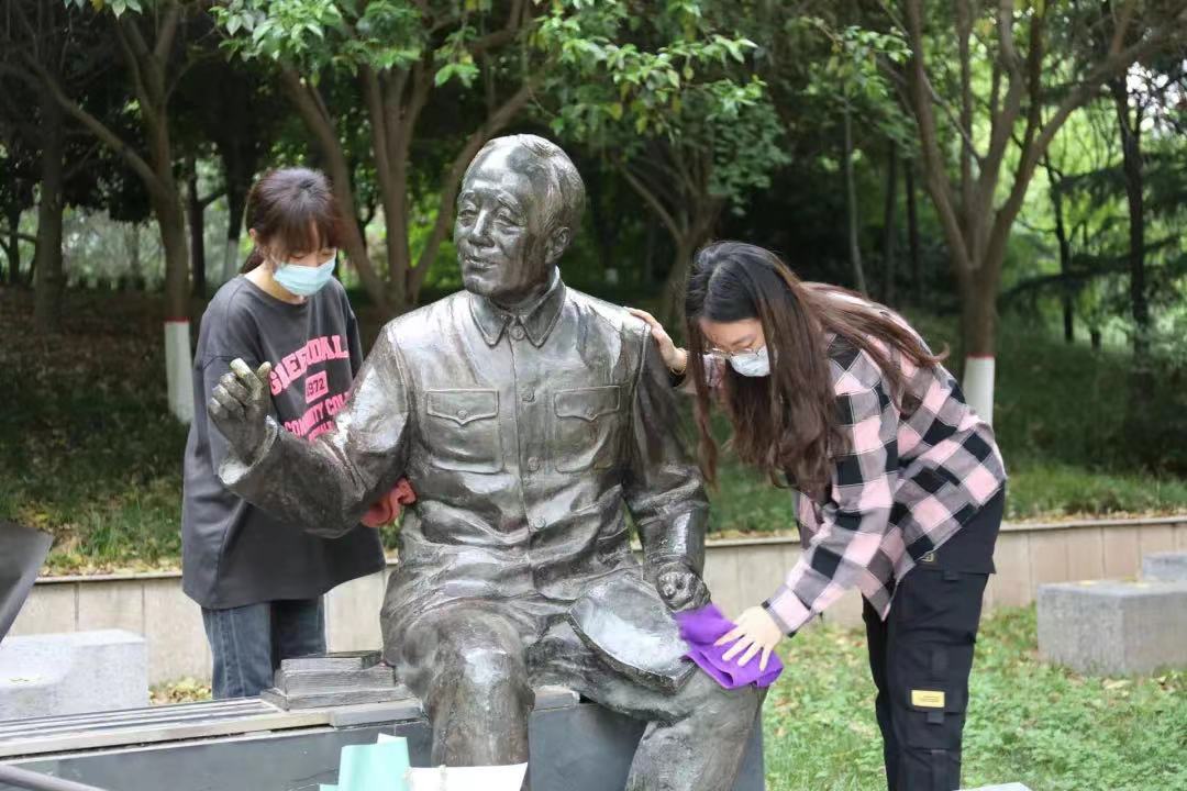 随后,同学们分配好各种劳动工具,分组分区域打扫242net必赢责任田。有的同学通过使用夹子等工具拾取草坪内烟头等垃圾,有的同学用心擦除雕像上的每一粒灰尘,有的同学挥舞着扫帚清除着地上的落叶……所有人都全心投入到这场生动的实践教育中。