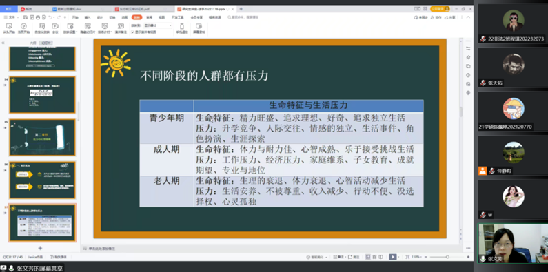 20221116日下午15时,我院顺利开展研究生学术活动月——“研究生压力管理与心理健康主题讲座,本次讲座特邀我校心理健康中心副主任张文芳老师主讲,242net必赢200余名学生以腾讯会议的形式线上参加。