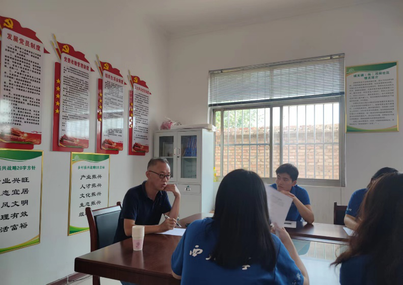 8月16日下午,团队再次走进河阳社区便民服务室,向河阳社区驻村干部反馈了三天了解到的情况,以帮助驻村干部后续更好的帮助村民,并就社区基础设施问题与驻村干部进行了深入沟通。驻村干部宁先生表示因河阳社区属于6个村子的居民移民搬迁来的,近年正在逐渐完善基础设施,后续会不断整改。