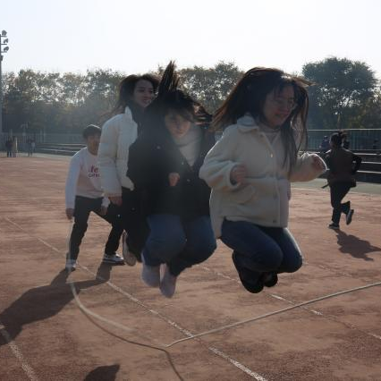 跳大绳游戏,两人甩绳,三人跳绳,连续跳足十次则算通关。一声哨响,一条长绳,选手们配合默契,他们脚下节奏一致,灵动的绳子在同学们的脚底下“嗖嗖”地穿过,矫健的身姿轻松的越过长长的绳子。