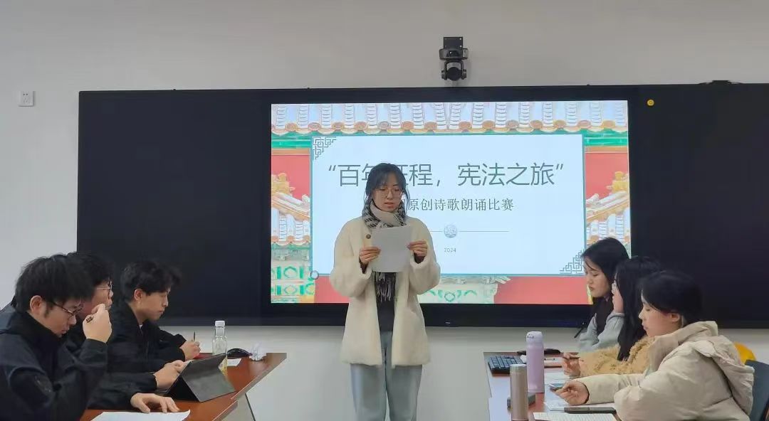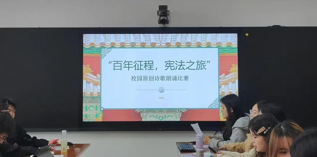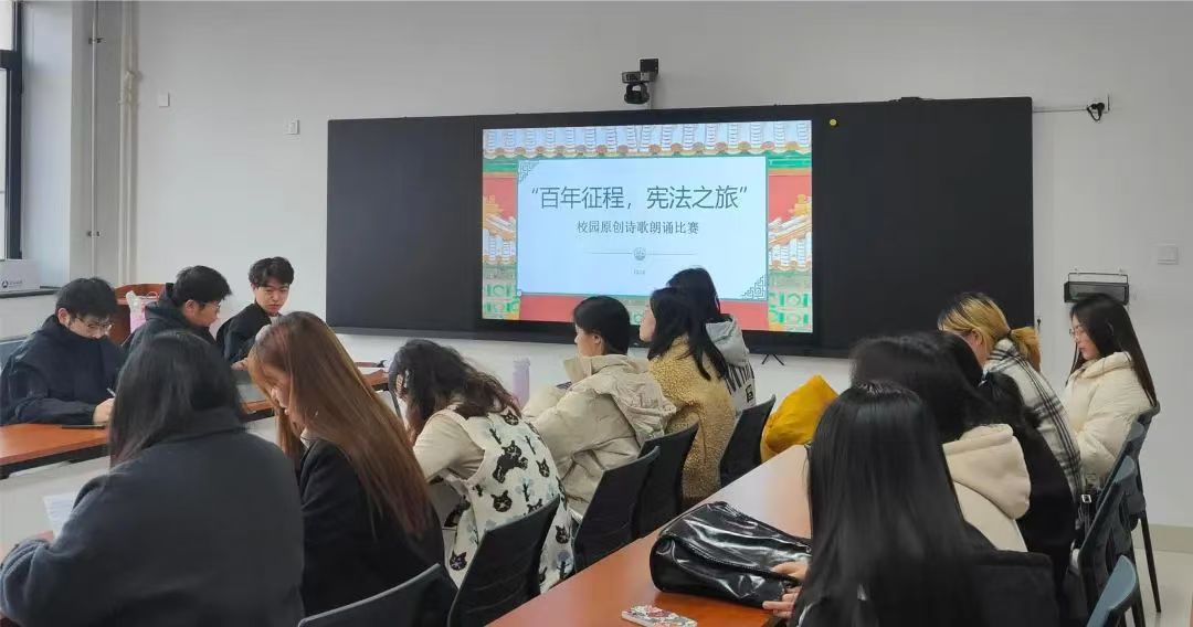 为了深入践行习近平总书记关于宪法宣传教育的一系列重要指示,旨在培养青年学生坚定的法治意识,深刻理解全面依法治国的重要价值,营造崇尚宪法、恪守宪法、捍卫宪法尊严的浓厚氛围,我院于11月22日在西学楼隆重举办了以“铸法中国——百年征程,宪法之旅”为主题的校园原创诗歌朗诵活动。