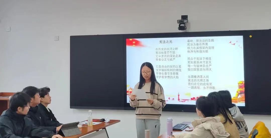 来自不同年级,不同专业的同学们以诗歌的方式讲述着他们与宪法、法律的关系,分享着他们对宪法,对社会,对人生的深刻思考。
