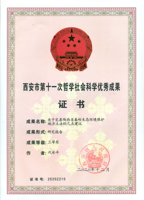 日前,西安市人民政府公布了西安市第十一次哲学社会科学优秀成果奖评奖结果,我院本次共推荐12项科研成果申报参评,获奖5项,其中,一等奖1项、二等奖1项、三等奖3项。成果类型涵盖著作、论文和调研报告。实现了获奖质量、获奖数量的双重突破,成果类别的全覆盖,创我院历年西安市哲学社会科学成果奖励历史新高。