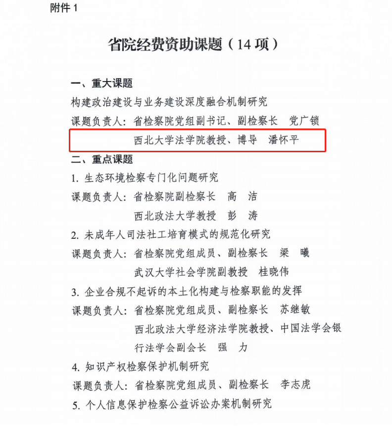我院潘怀平教授获批2022年度陕西省人民检察院检察理论研究课题重大课题立项