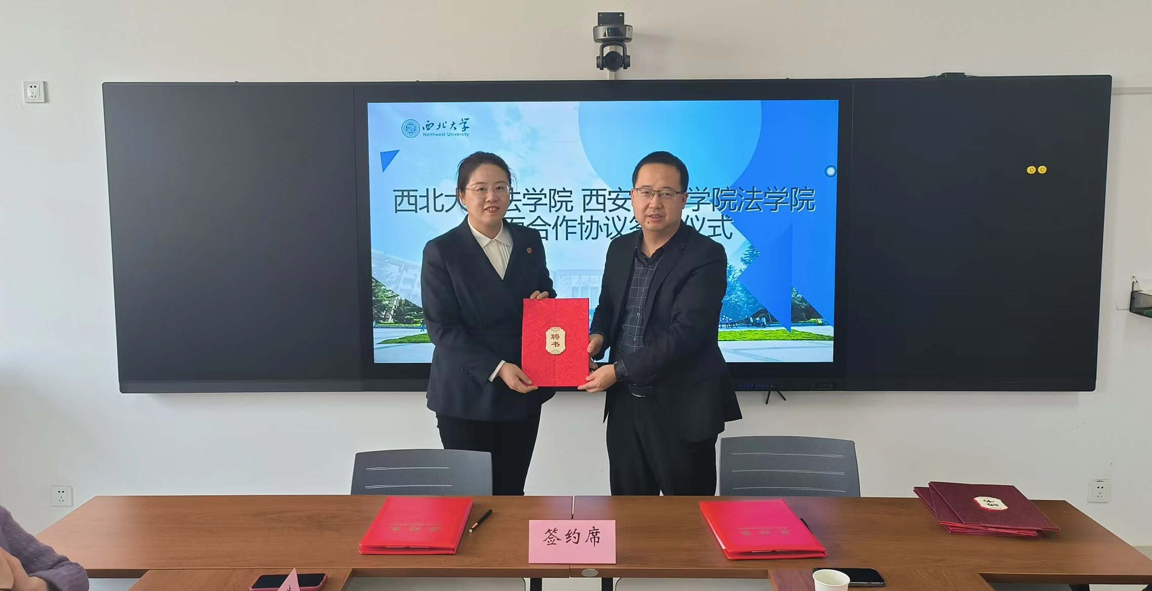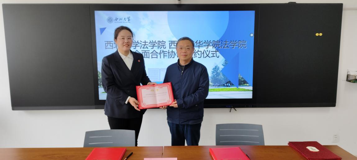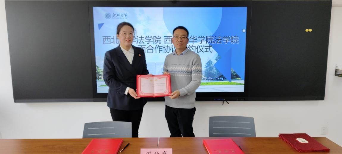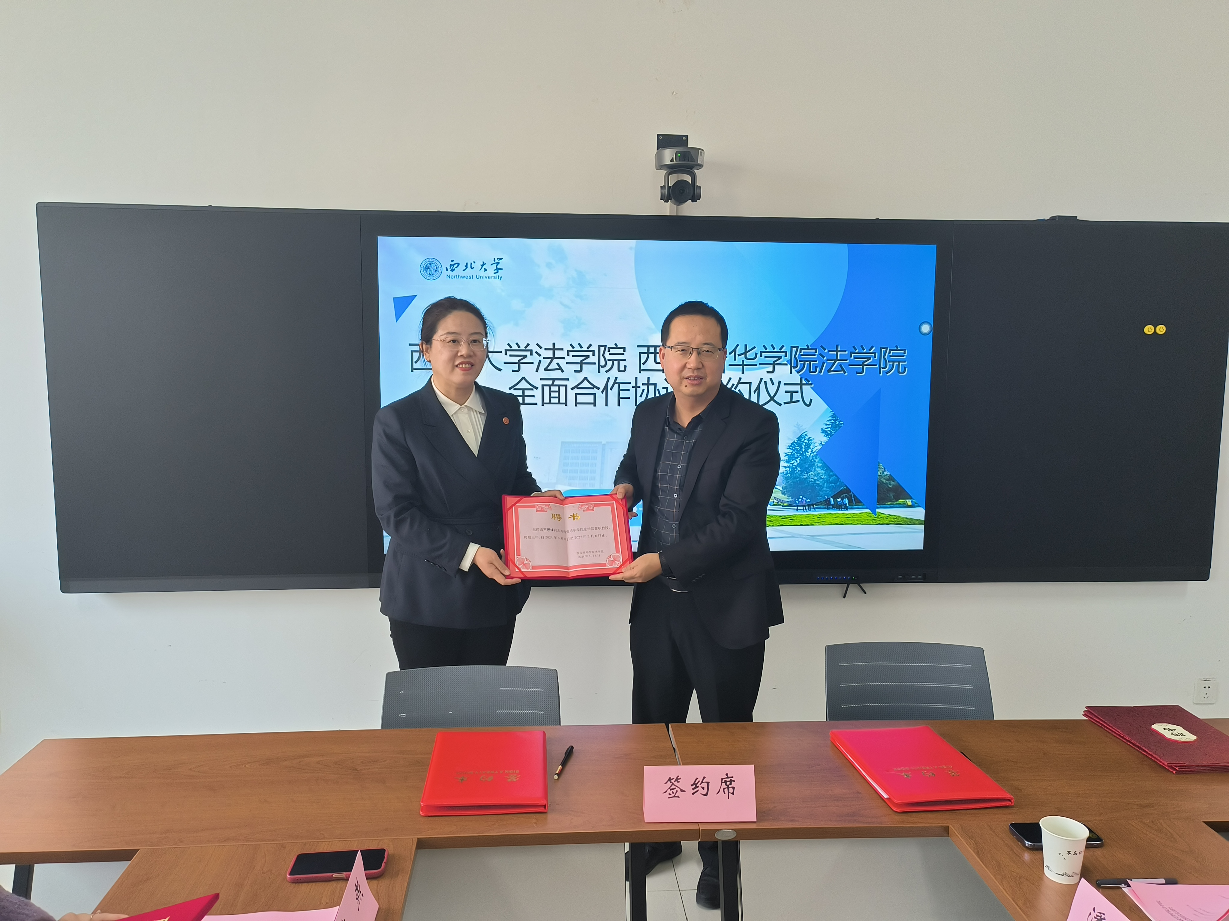 36日上午,我院与西安培华学院242net必赢在长安校区西学楼0906举行全面合作协议签约仪式。西安培华学院242net必赢院长王鸿貌、副院长赵洁、党总支书记兼副院长韩斌、副教授王庆昱、综合办公室主任刘冬梅、法律实务教研室主任马亚乐、私法教研室主任高燕、综合办公室工作人员吴煜华;院党委书记李一凡院长王思锋副院长邱洪华、许博工会主席卞辉宪法学与行政法学教研部主任张炜达理论法学教研部主任潘怀平环境与资源保护法学教研部主任王社坤学院办公室主任王哲参加签约仪式。签约仪式由院党委书记李一凡主持。