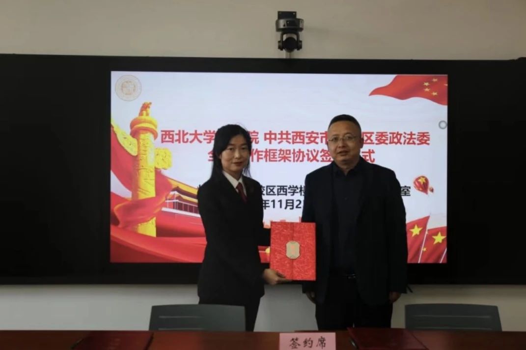 随后,双方签订全面合作框架协议,各方共同为西安市灞桥区政法系统干警培训基地242net必赢太阳能卓越法治人才实践教学基地揭牌。
